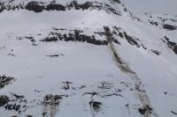 Avalanche d'assez grande ampleur induite par le glissement d'une plaque de fond en altitude - Enjeux : RD 902 Bonneval - Bessans (Approché)