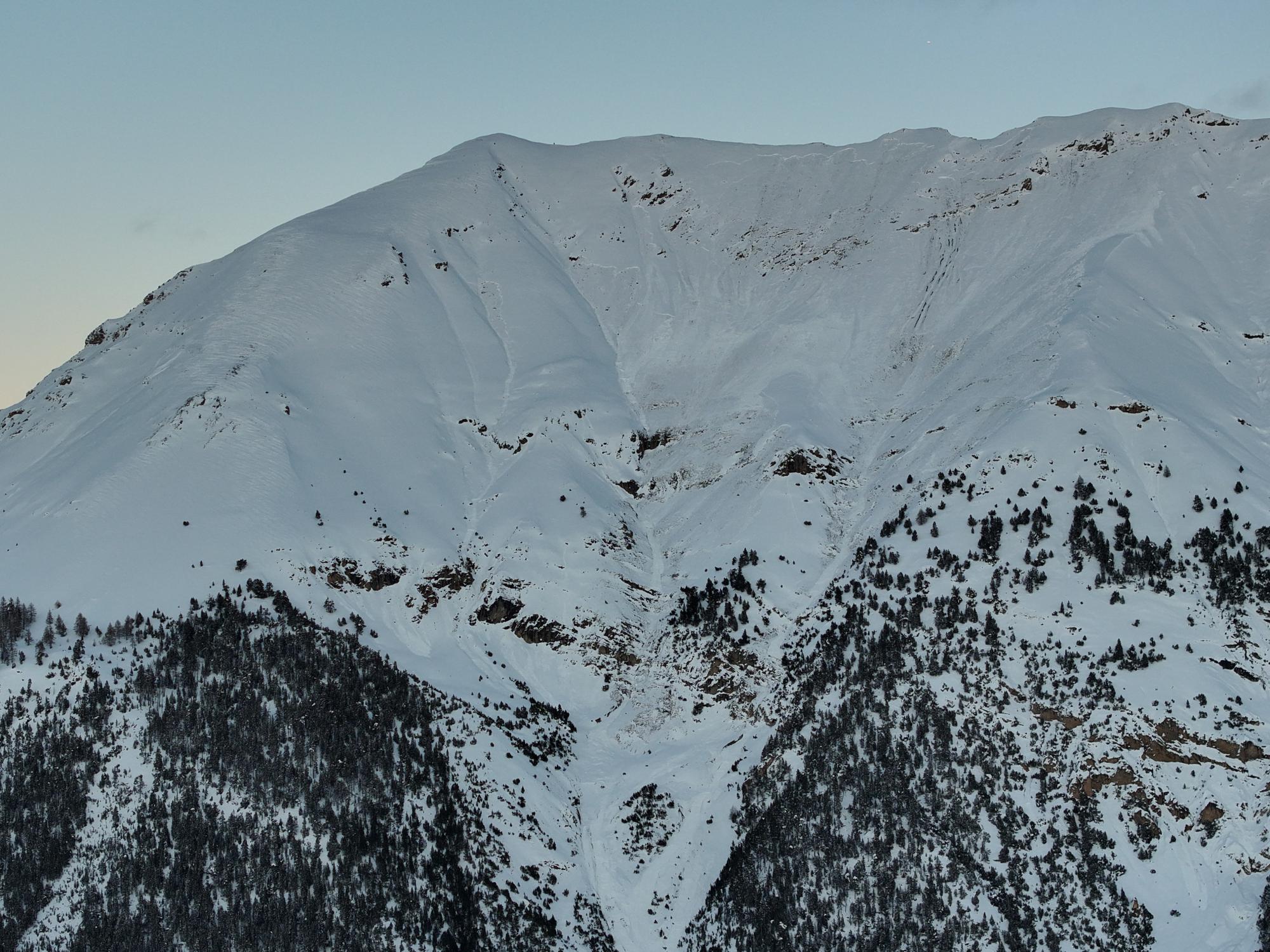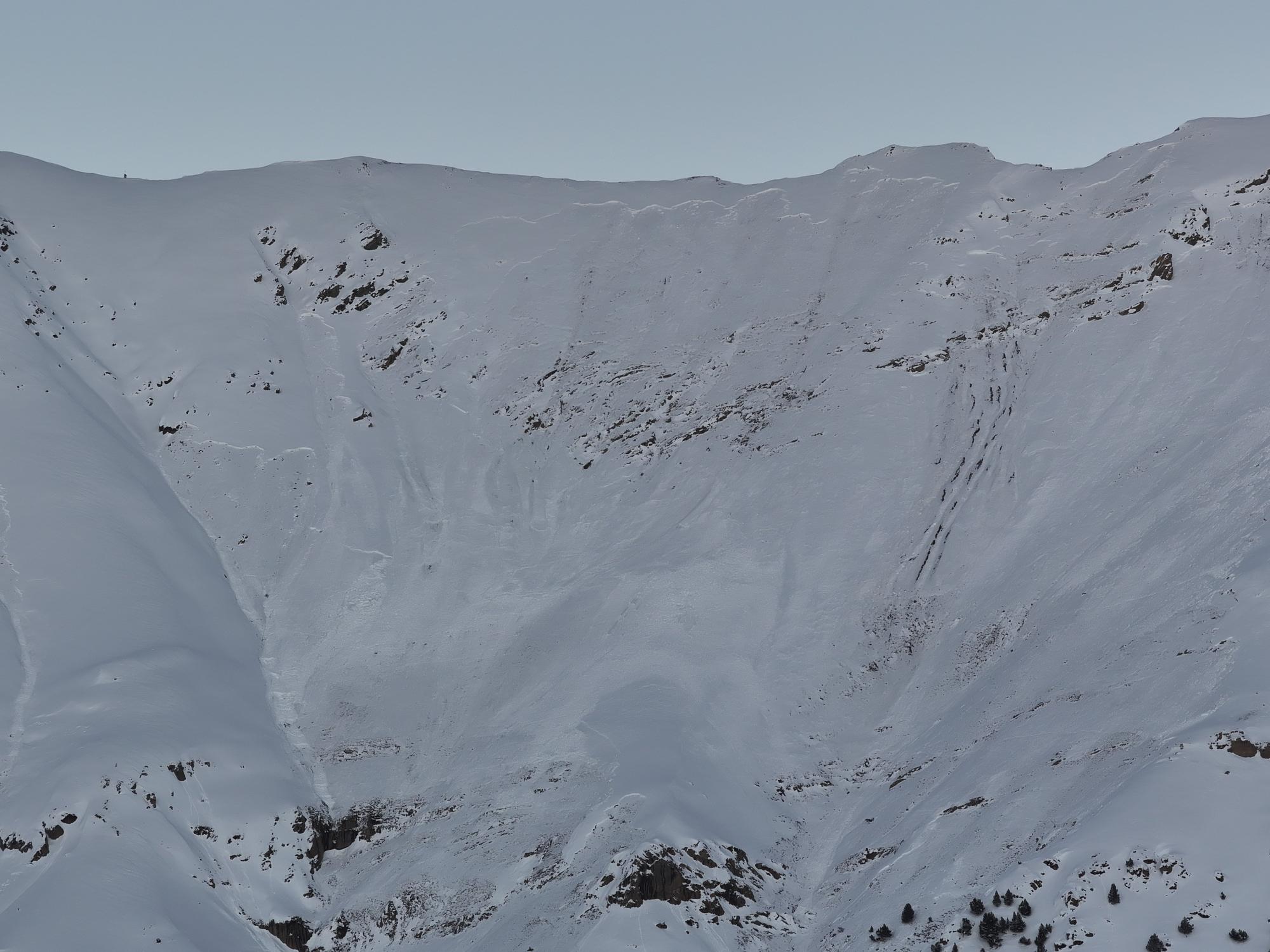 Plaque de très vaste étendue, témoin de la forte continuité des couches fragiles persistantes en place. Bien qu'impressionnante de par la largeur de la zone de départ, elle est restée d'ampleur modeste pour le secteur car le manteau neigeux était relativement peu garni. Elle illustre cependant bien son caractère extrêmement instable.
