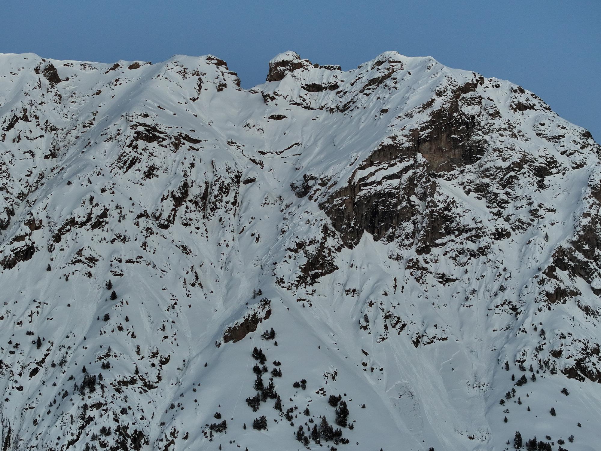 Multiples plaques parties dans cette face au profil alpin, sans que cela concerne toutefois de gros volumes. - Enjeux : RD 994G (Zone de départ)