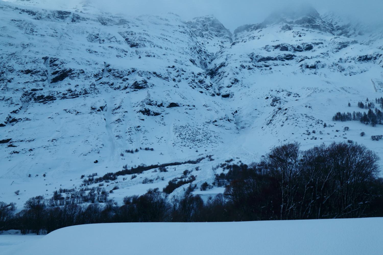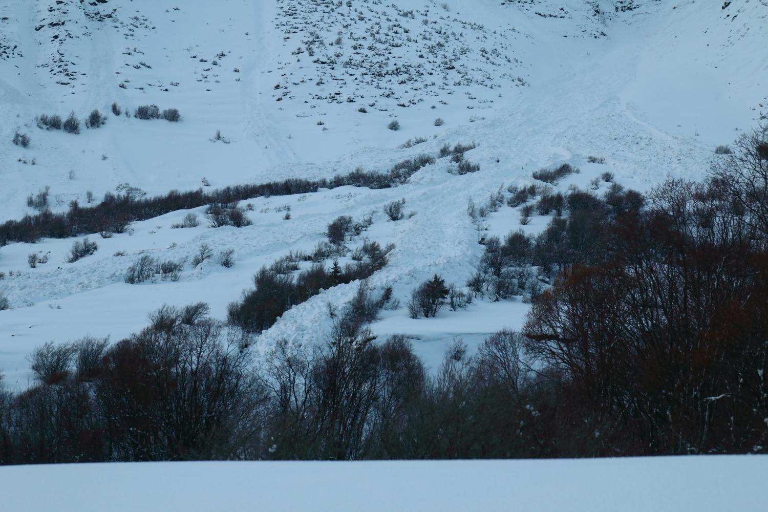 Une des langues du dépôt a presque atteint l'Arc. Plusieurs départs de plaques visibles dans la zone de départ. - Enjeux : RD 902 Lanlevillard-Bessans (Approché)