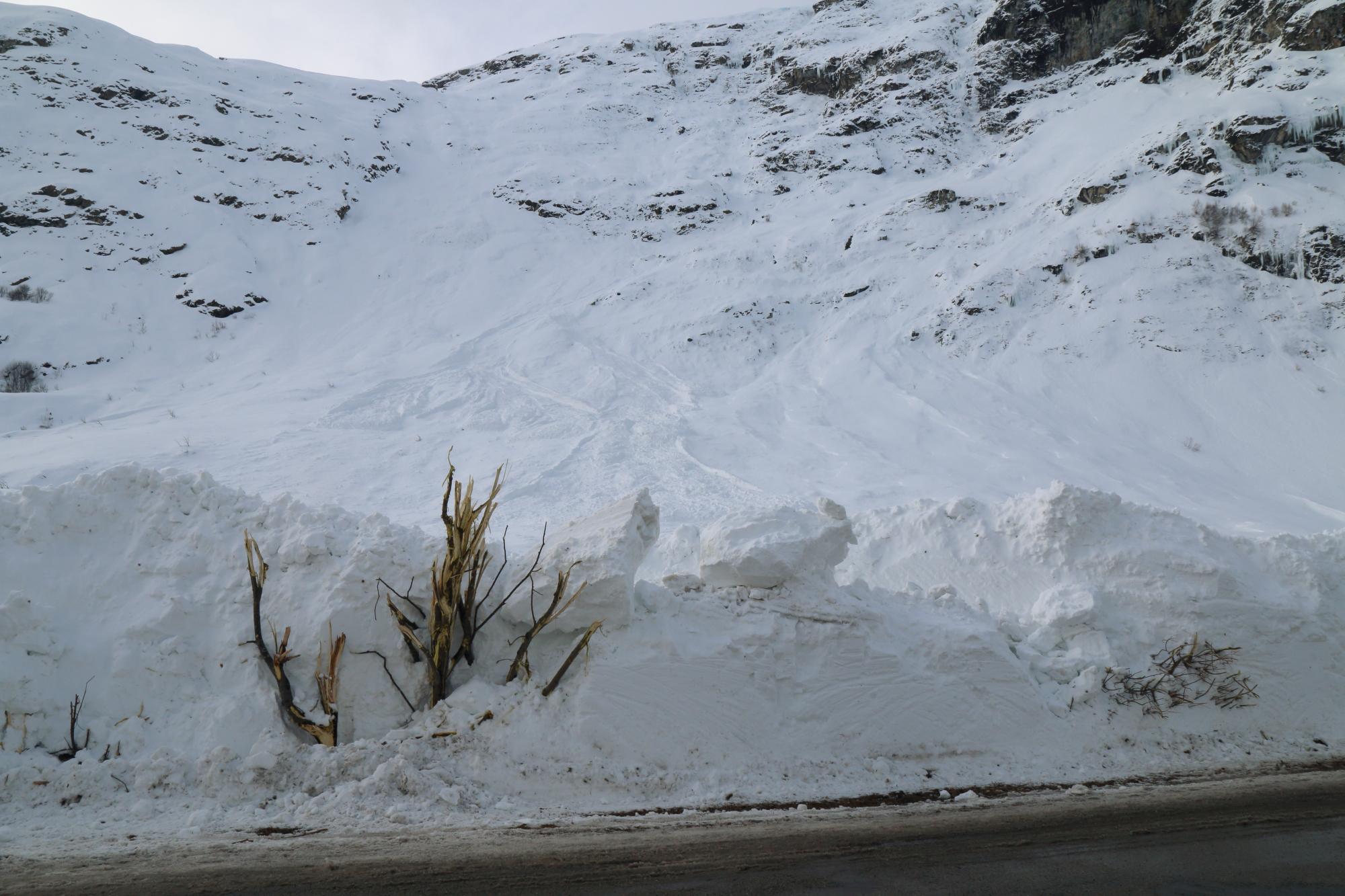 Avalanche que l'on avait pas vue avec cette ampleur depuis plusieurs années. Le lit de l'Arc est complètement recouvert par le dépôt. La RD 902 (axe Bessans - Bonneval), fermée préventivement, a été traversée et recouverte sur 200 m de large, avec par endroits environ 8 m de neige d'épaisseur. Plusieurs avalanches successives se sont probablement produites, sans que l'on ne puisse déterminer précisément si la plus grosse est partie naturellement ou suite à la mise en œuvre des Gazex (PIDA), pendant la période de fermeture préventive de cette route départementale. - Enjeux : RD 902 Bonneval - Bessans (Traversé)