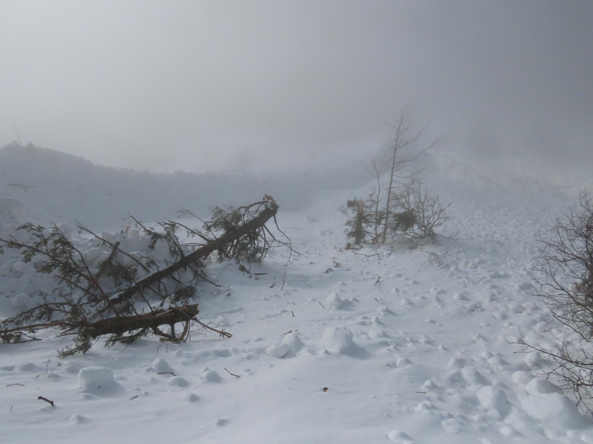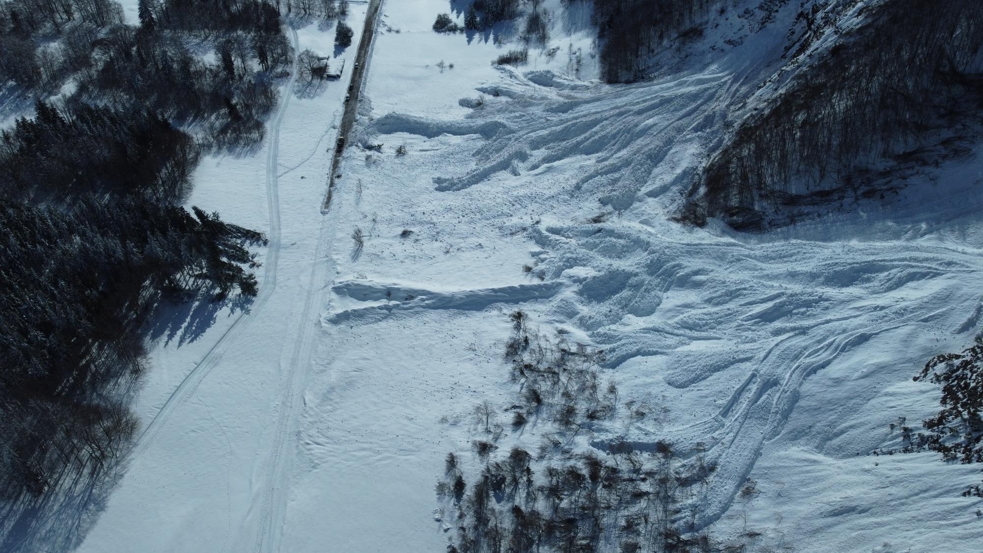 Partie spontanément en fin d'épisode perturbé, lors de la période de fermeture préventive de la route. La Pisse et Rochette toues les deux parties. Gros aérosol puissant, ayant traversé la RD sur environ 500 m de large, couché la ligne téléphonique et cassé du gros bois de l'autre côté. Dépôt dense sur environ 200 m de route également. - Enjeux : RD 526 (Traversé)