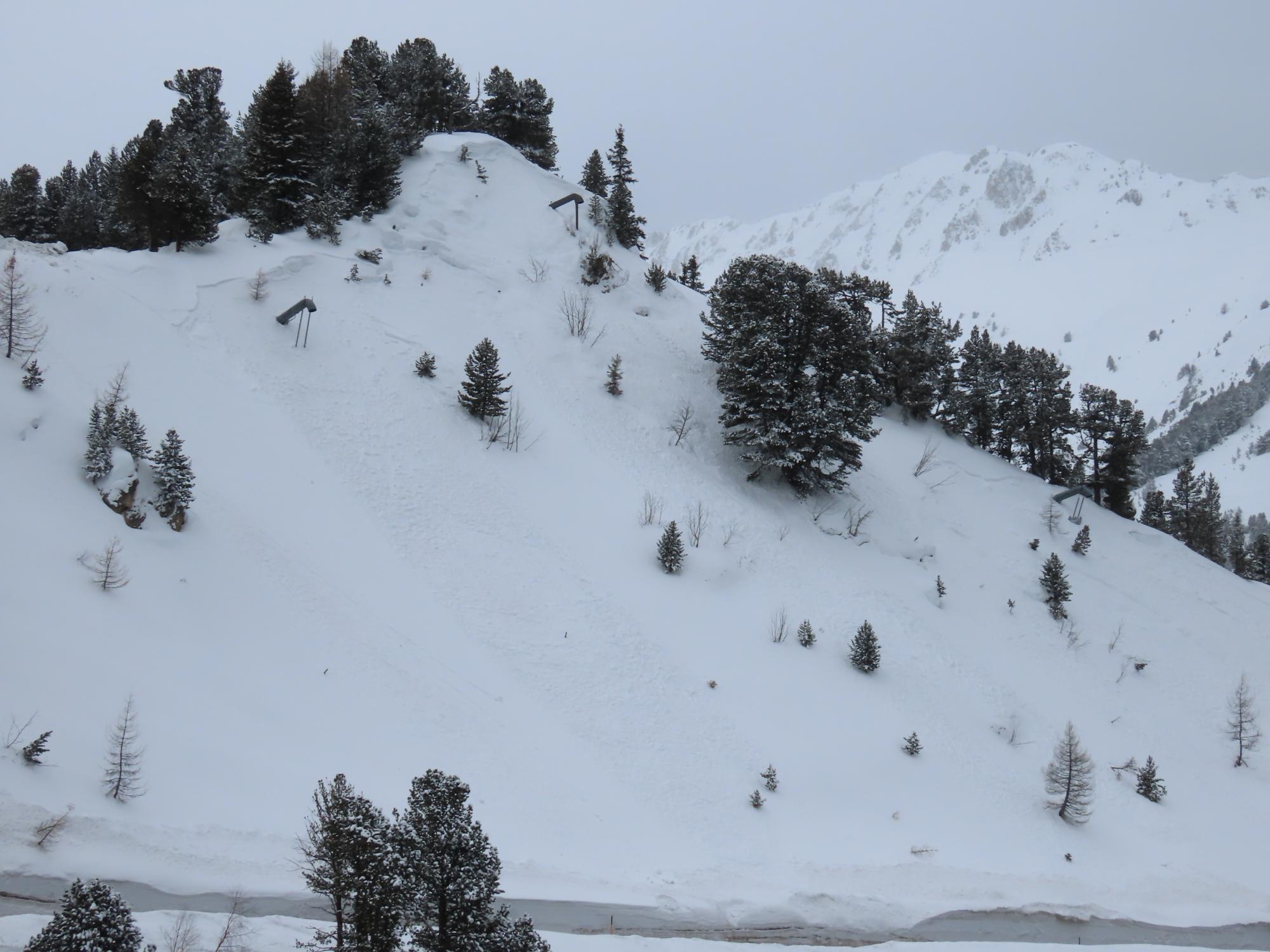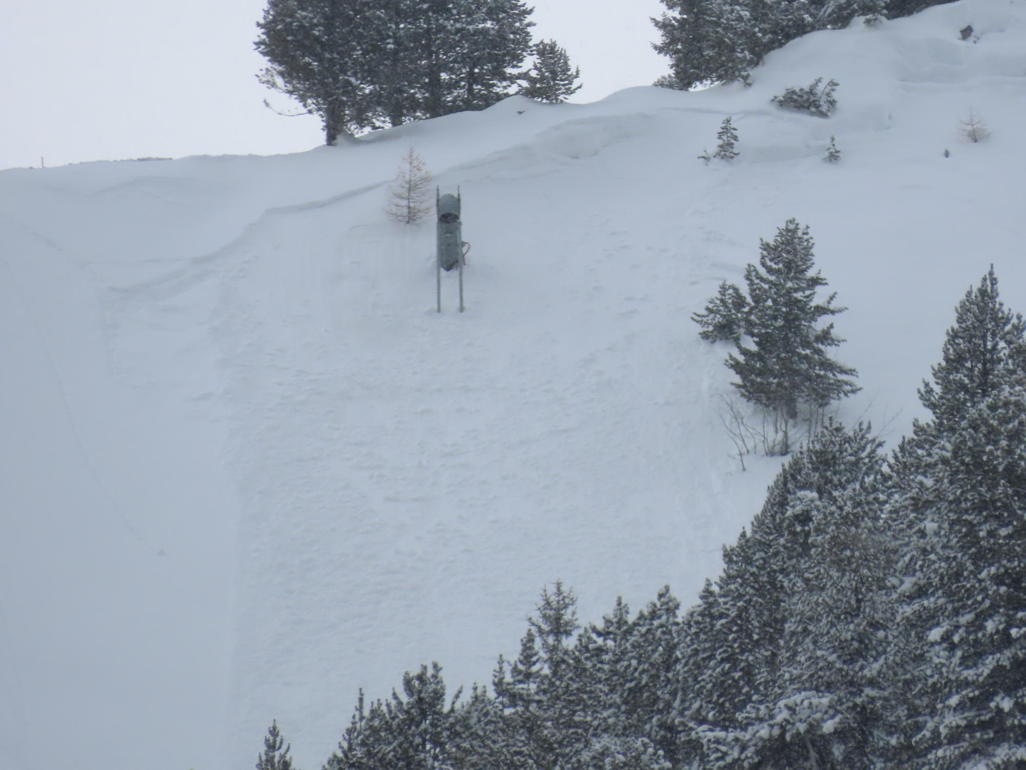 Plusieurs plaques ou coulées de faible ampleur ont été déclenchées suite à la mise en oeuvre du PIDA pour la sécurisation de la route d'accès à Arc 2000 (route tout juste atteinte au secteur Falaise, approchée seulement au secteur Plaque à Vent). Seule la neige récente à été mobilisée, générant un faible volume d'écoulement. - Enjeux : RD 119 (Approché)