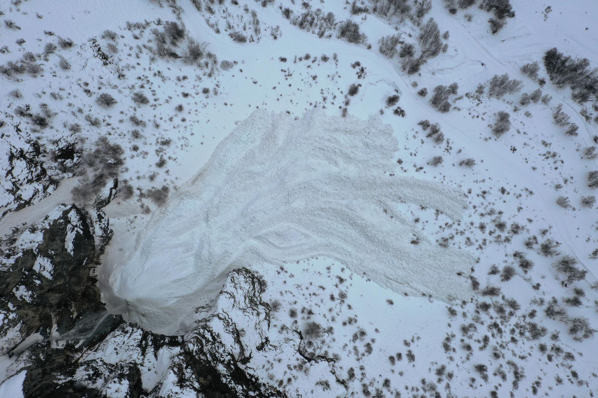 Date approximative. Avalanche spontanée de grande ampleur dont le dépôt a approché la route (préventivement fermée). - Enjeux : RD 480 (Approché)